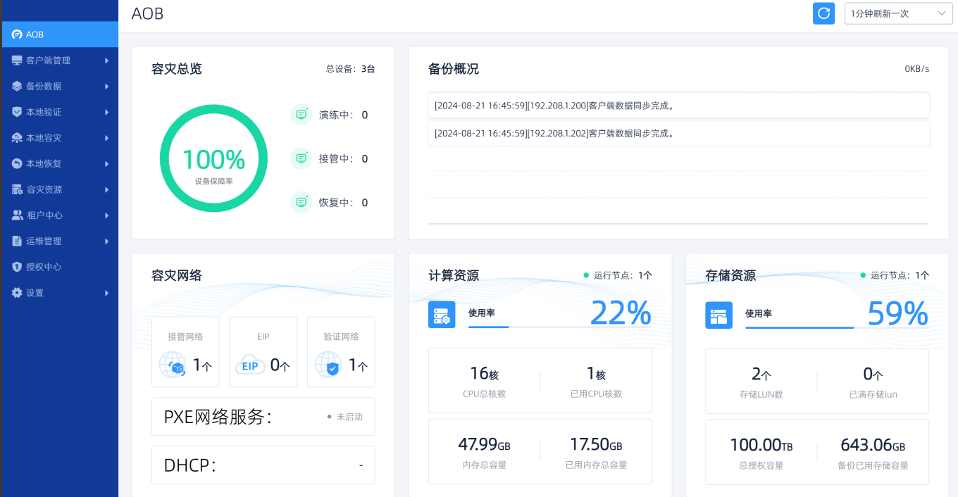 集CDP持续数据保护、数据备份、数据验证、应急接管、容灾资源管理、容灾体系管理为一体的应急灾难恢复平台。