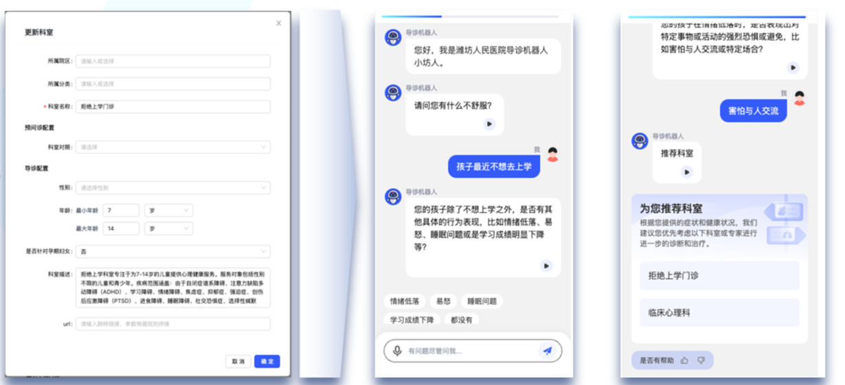 智能综合科室介绍及患者需求,为患者提供便捷交互及精准推荐。